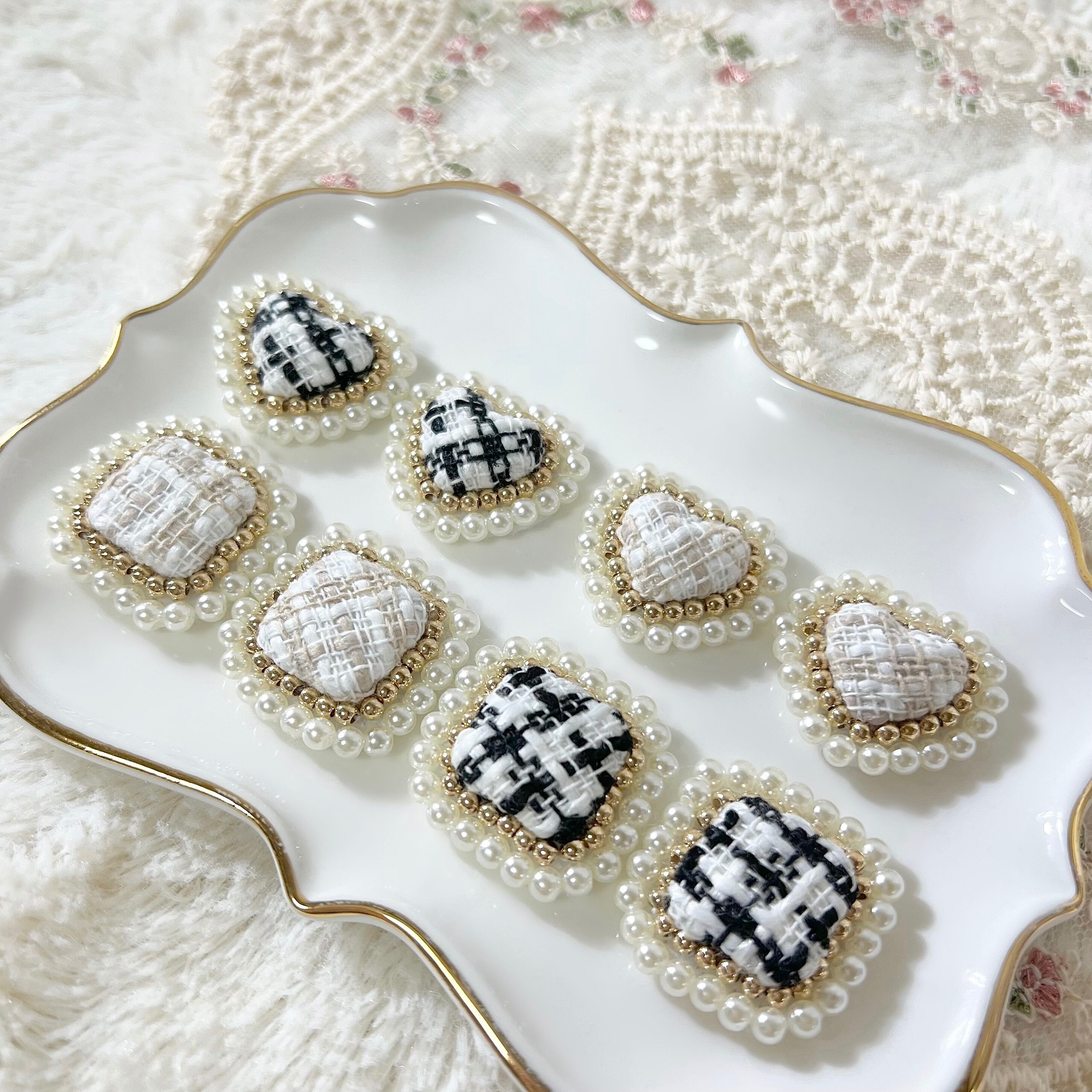 ツイード素材のハート型アクセサリー⚪︎◯